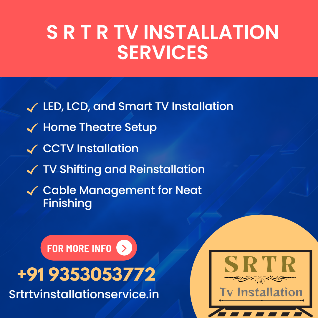 S R T R TV Installation Services is a trusted name in Bengaluru for expert television and home theatre setup. Founded by Srinath, we specialize in providing clean, secure, and professional installation for all types of televisions — including LED, LCD, Smart TVs, and full home entertainment systems.